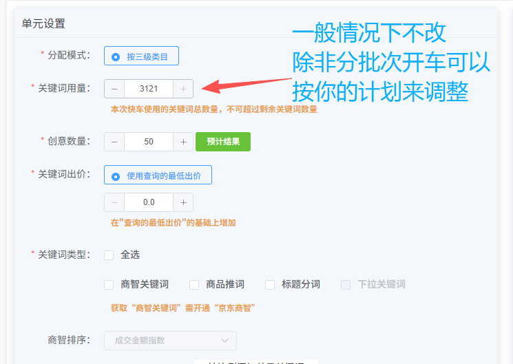 京东快车里,规定了 一个计划最多放100个单元 一个单元最多放200个关键词 一个单元最多放100个创意(sku)