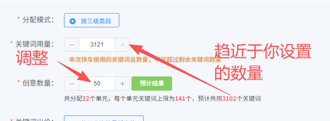 主要分配每个单元下的创意(sku)数量, 目的是创建足够多的单元,让关键词尽可能全用掉